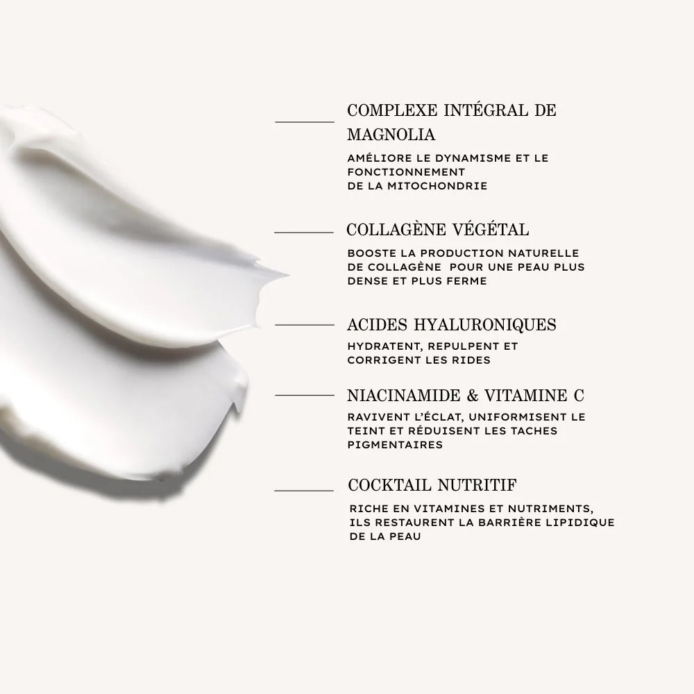 Découvrez un soin jeunesse d’exception imaginé pour répondre aux besoins des peaux les plus sèches : cette crème formulée à partir d'un complexe de Magnolia, de collagène végétal et de niacinamide aide à inverser les signes visibles de l’âge.