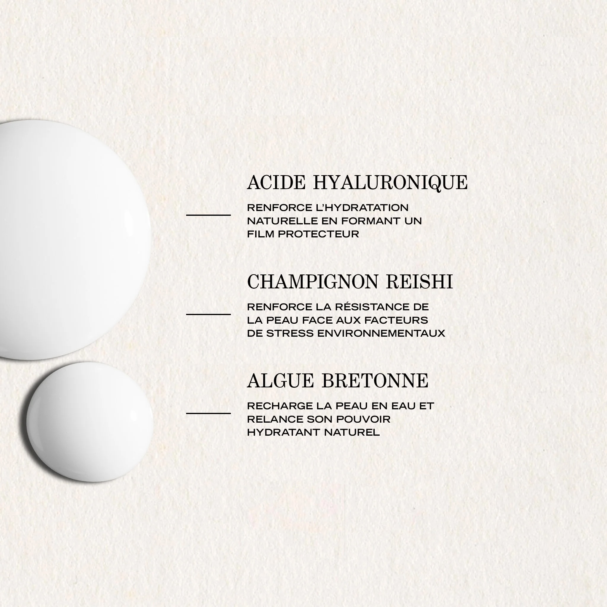L’infusion hydratante des peaux assoiffées Enrichi en un duo de plantes adaptogènes, l'Algue Bretonne et le Champignon Reishi, et d'acide hyaluronique à haut poids moléculaire, ce sérum hydratant pour le visage recharge intensément la peau en eau et relance son pouvoir hydratant naturel. Il aide également à lutter contre le stress environnemental du quotidien, comme les variations climatiques et la pollution, pour une hydratation sur-mesure de 72 heures, quel que soit l'environnement ou la saison. Résultat : La peau est hydratée dès la première application. Son plus : Sa texture gel fluide ultra-fraîche qui fusionne avec la peau et pénètre instantanément. Quand l'utiliser ? Le matin et le soir, sur peau propre, juste avant votre crème. Clean* et vegan**. Le flacon contient 20% de verre recyclé et l'étui est en papier 100% recyclé. Testé sous contrôle dermatologique. *Sans ingrédients controversés. **Sans ingrédients d'origine animale