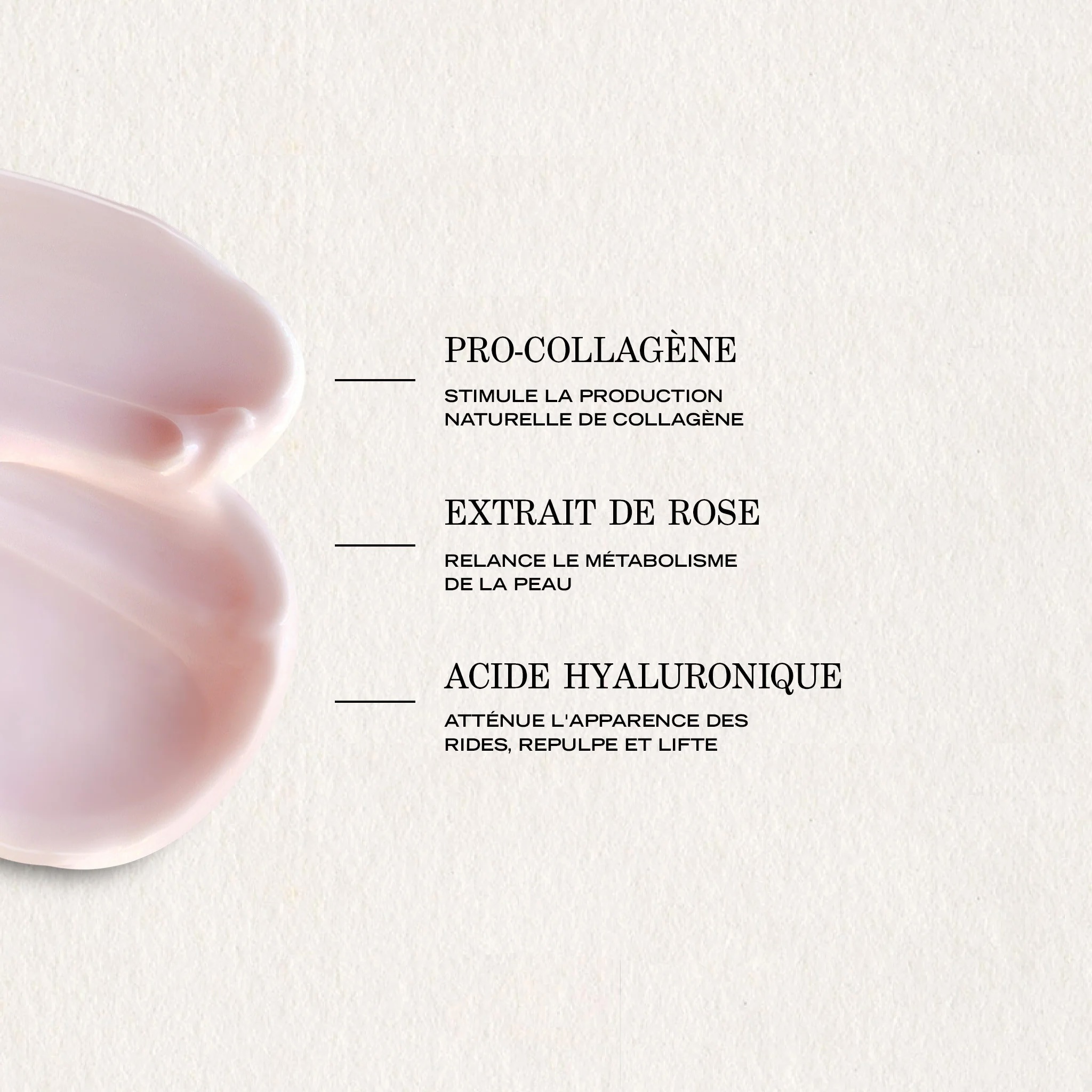 Oléo-crème de nuit resculptante Découvrez la gamme Roselift et sa double action redensifiante et liftante. Ses formules uniques combinent un peptide booster de collagène avec un actif breveté issu de la rose de Damas. La Crème Sculptante Nuit est un soin de nuit sculptant conçu spécifiquement pour les peaux en manque de fermeté. Enrichie en pro-collagène, ainsi qu'en extraits de pivoine et de rose de Damas, cette crème raffermit l'ovale et redensifie les volumes du visage. L’acide hyaluronique encapsulé présent dans sa formule contribue à atténuer l'apparence des rides et à repulper la peau. Résultat : La peau est lissée, plus ferme et plus rebondie. Son atout : Sa texture enveloppante, riche et onctueuse, accompagnée d'un parfum aux notes florales, rosées, fruitées et boisées. Quand l'utiliser ? Le soir, après avoir appliqué votre sérum.